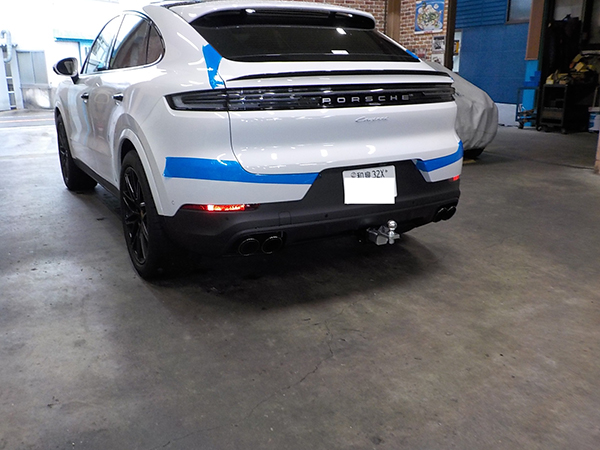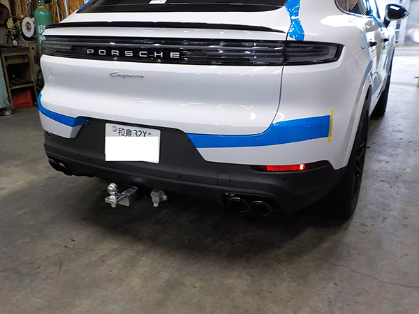 ポルシェカイエンクーペ 9YA に特注ヒッチメンバー製作取付しています。