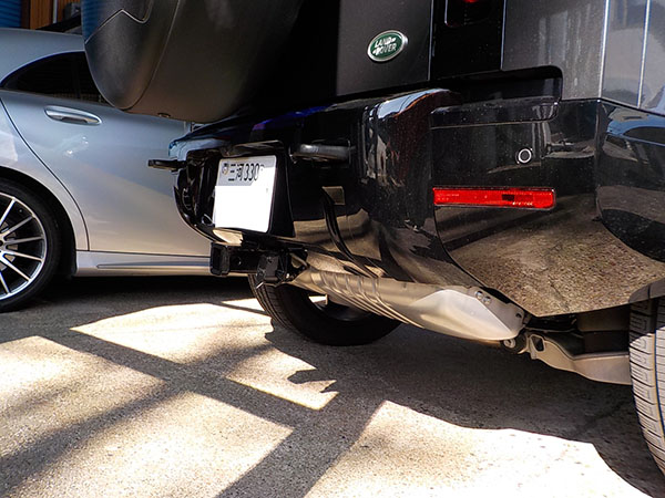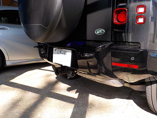 新型ランドローバーディフェンダー110に特注ヒッチメンバー製作取付しています。