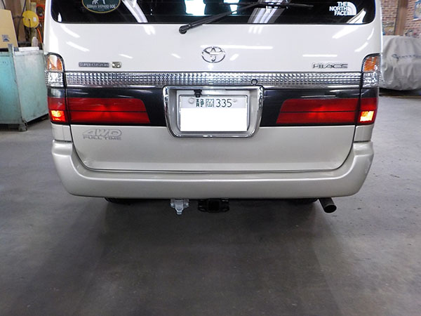 100系ハイエースワゴンに特注ヒッチメンバー製作取付しています。