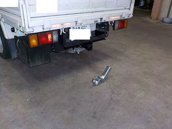 いすゞエルフ平ボディトラックに特注ヒッチメンバー製作取付しました。