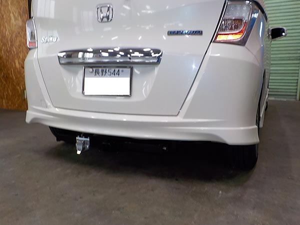 フリードスパイクハイブリッド GP3にヒッチメンバー取り付けしています。