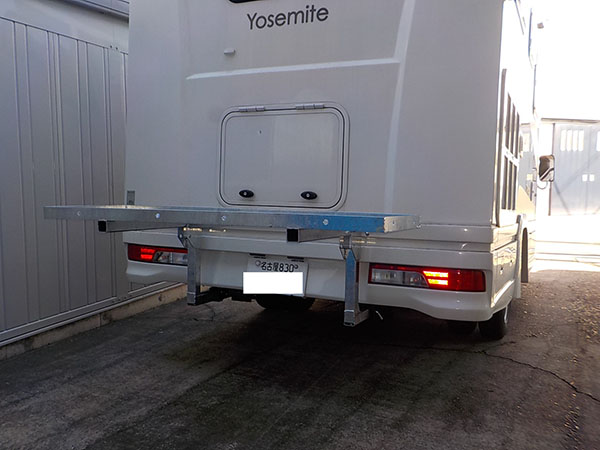 カムロードファンルーチェの特注ヒッチマウントキャリアを製作し納品しました。