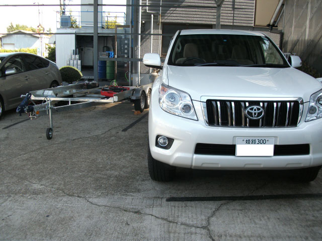 150プラドが入庫しヒッチメンバー取付してます。