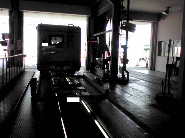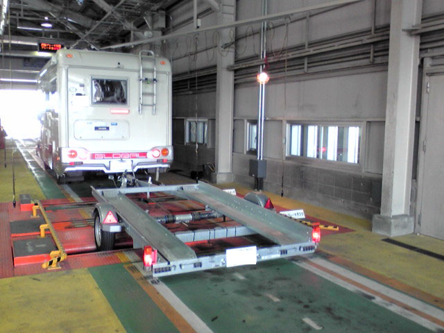 ブレーキテスターに載せて、牽引車を少しバック。