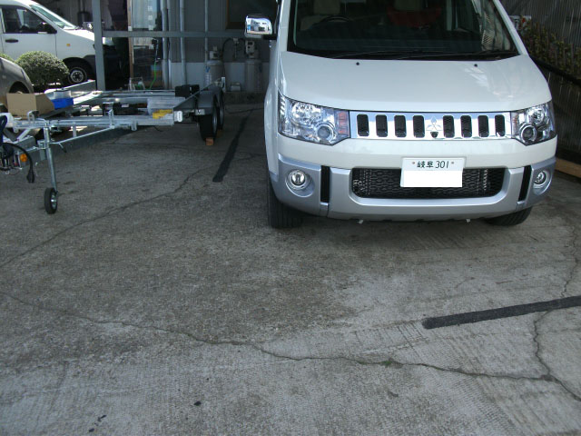 M様のデリカD5にヒッチメンバー取付作業をしています。