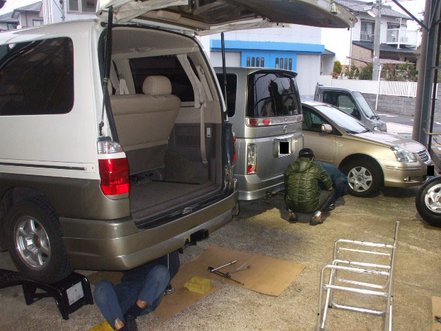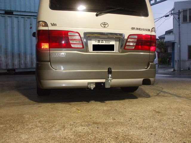 久々の超遠方青森県からご来社下さいました、トレジャーアイランド青森店社長様のグランドハイエース特注2tヒッチメンバーを取り付けました。