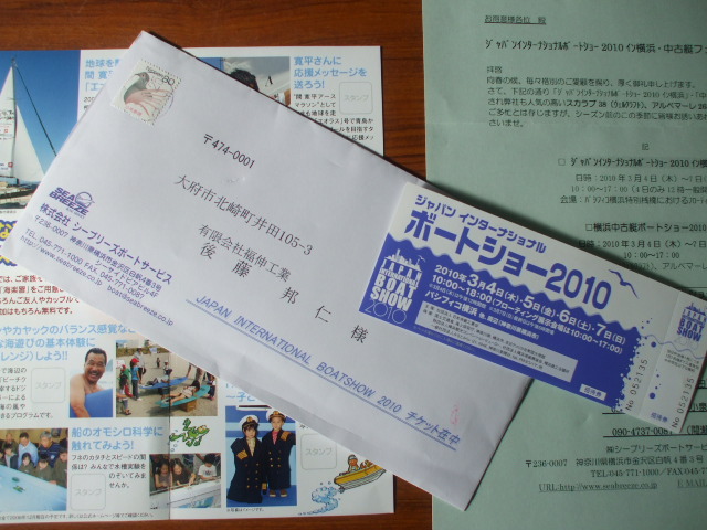 からボートショーチケットが届いていた。今週末は、皆様横浜へ行かれてみてはいかがでしょうか。