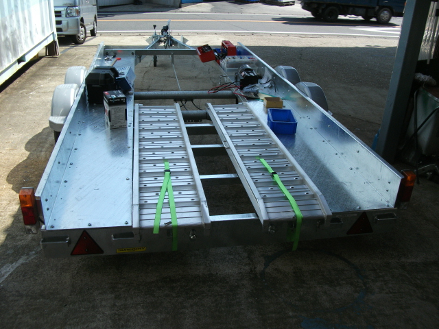 明日三河地区での登録に向け、W84車載トレーラーのオプション装備品製作&取付をやってます。