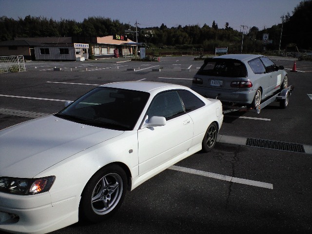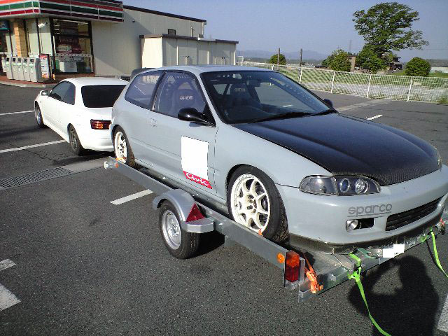 W76車載トレーラーにレース用シビックを積んでレビンで牽引していらっしゃいます。