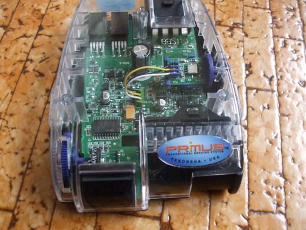 電気式ブレーキのアメリカントレーラーを牽引するなら、牽引車運転席に取り付けなければならないブレーキコントローラーのTekonsyaプリムスのスケルトンモデルです。