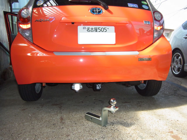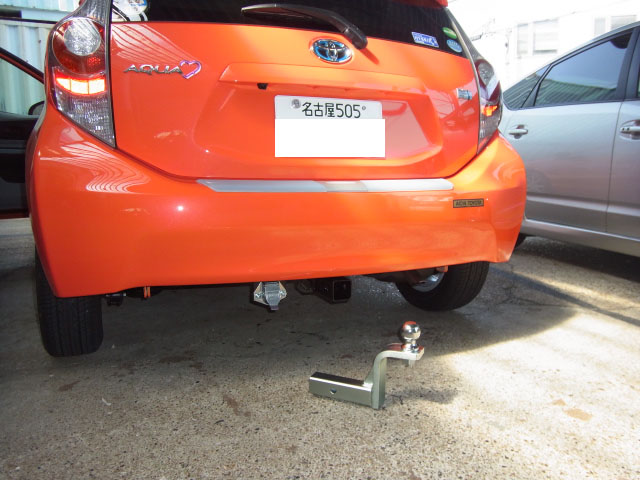 トヨタアクアNHP10への特注ヒッチメンバー取付作業が完了しました。