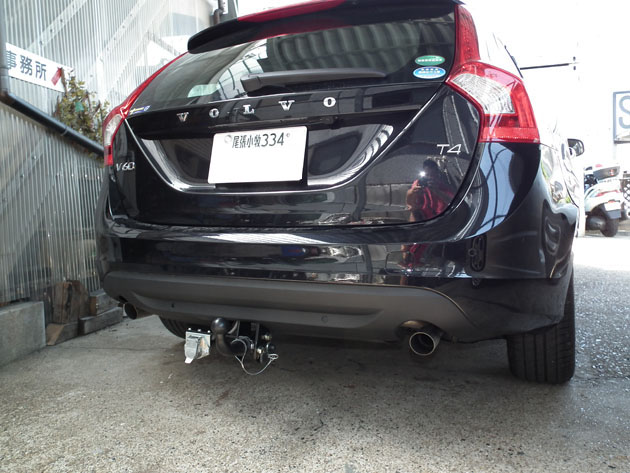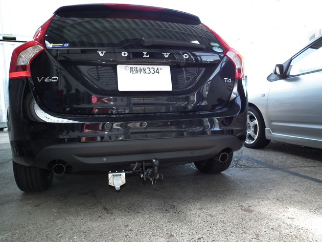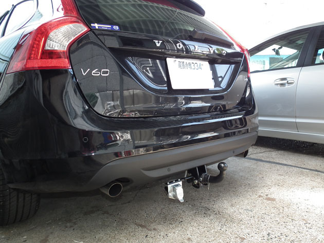 ボルボV60のヒッチメバー取付作業が完了しました。