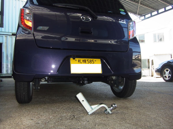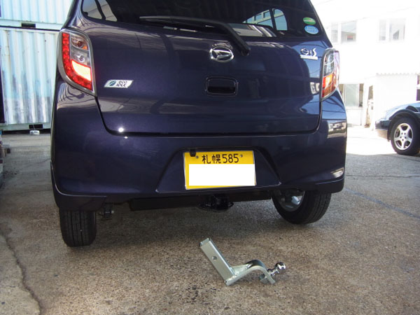 ミライースに特注ヒッチメンバー取り付けしてます。