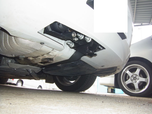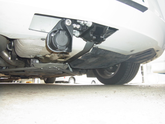 下から見たバンパーカット部分。電源コンセントはEu13pinでBMWマーク入りの純正品が手動で格納される構造。