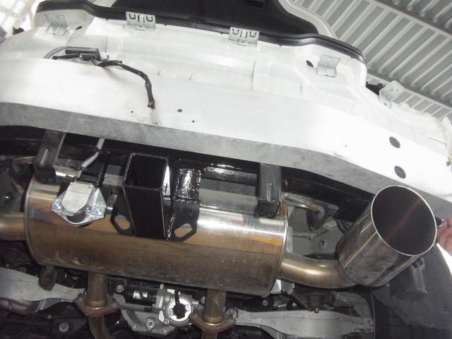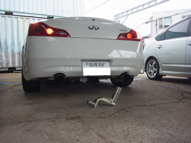 スカイラインV36クーペの特注ヒッチメンバー取付作業が完了しました。