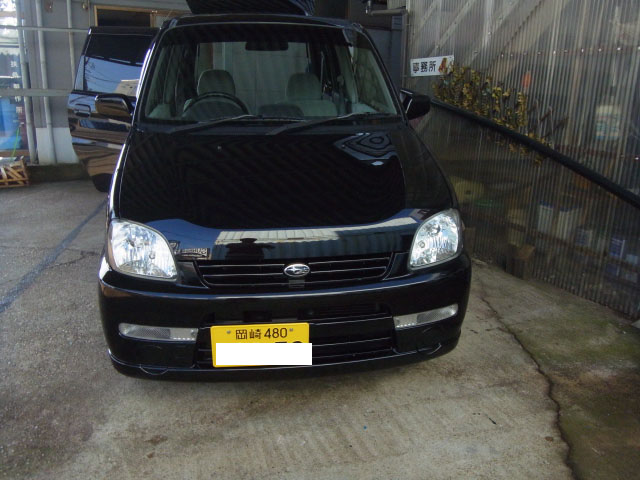 スバルプレオに特注ヒッチメンバー取付作業をしています。
