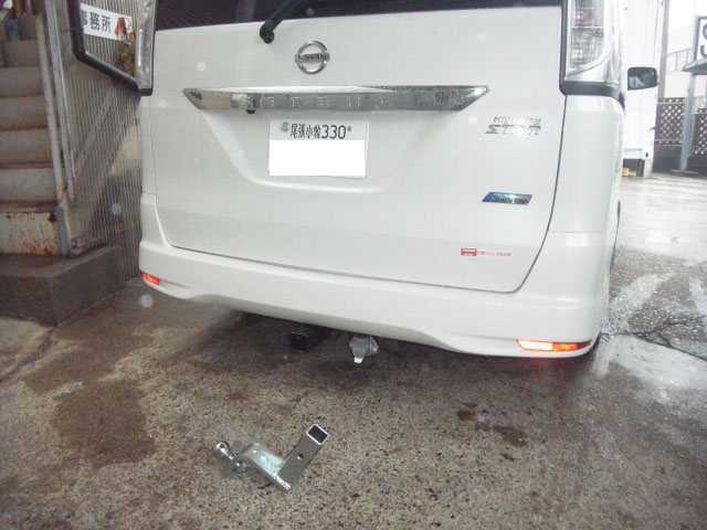 C26セレナハイウェイスターに特注ヒッチメンバー取付をしました。