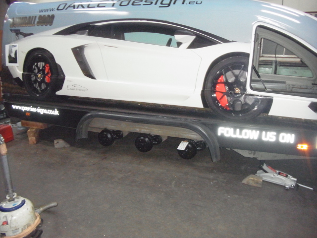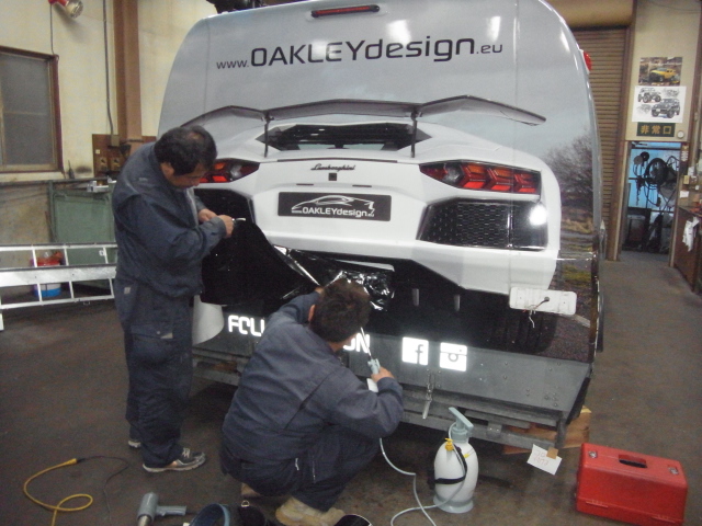 朝一番にチョー遠方からメルセデスGL(X166)が入庫し、さあヒッチメンバーを取付しようと 準備を始めたら、なんと純正の格納式ヒッチメンバーが付いてました。 お客様には使い方を説明して、終了。 とは言ってもやることは山程有るので、工場はせっせと稼働しています。 アヴェンタドール専用車載トレーラーをひたすら改善作業や整備 ラッピングの痛んだ部分や、灯火類変更に伴う穴になっちゃう箇所を、専門職人が修復してくれています。 http://www1.ocn.ne.jp/~osc1/studio_vox.htm 彼は小学生からの同級生なんです。 |