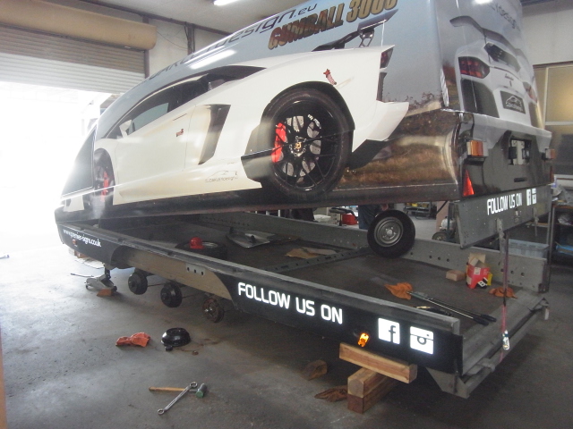 工場では相変わらず、アヴェンタドールの車載トレーラー整備です。