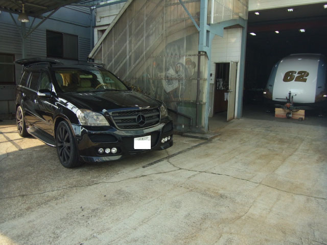 X164型のメルセデスGLが入庫してエアロに合わせた特注ヒッチメンバーの取付をしています。