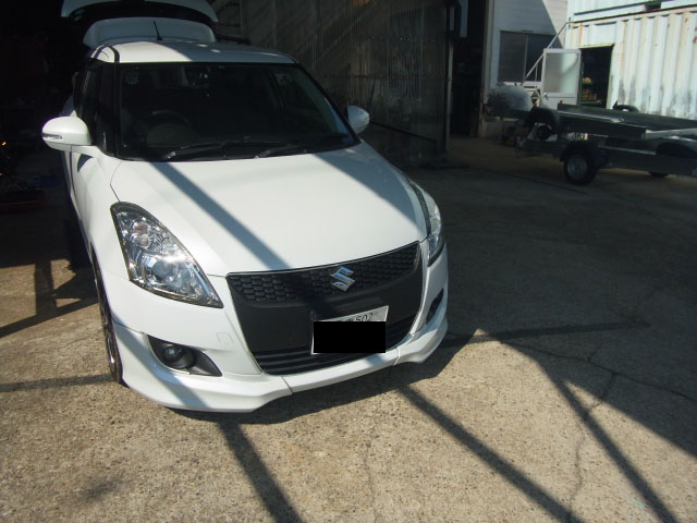スズキスイフトに特注ヒッチメンバー取り付け作業をしています。