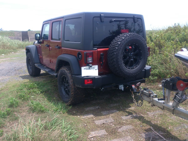 2.5t程のスキーボートを牽引する為に、JKジープラングラーアンリミテッドに特注ヒッチメンバー取り付けしました。