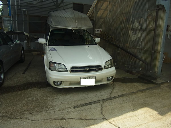レガシィランカスターが入庫して特注ヒッチメンバー取り付けしています。
