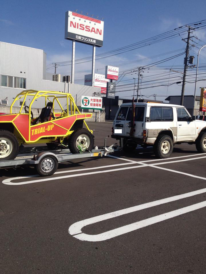 最初はクロカン走行する為の超改造されたジムニーをW76車載トレーラーに積んで貰っていました。