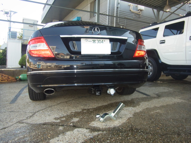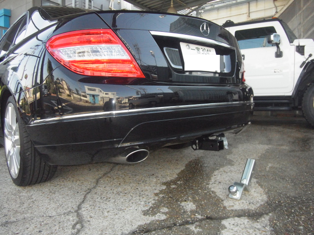 メルセデスベンツCクラスセダンW204型に特注ヒッチメンバー取り付け完了しました。