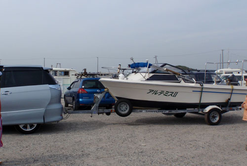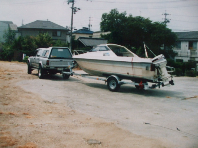 ボートの揚げ降ろし(ランチング)で牽引車のエスティマに潮がかかるのを防げますし、ましてやこんな風になっちゃったら大変ですし。 ちなみにこれは私が十数年前に持っていたトレーラブルボートヤマハSR17スターエースです。バウキャビンがあり、大型燃料タンク、Vハルによる走破性、現在でも通用するデザインで人気だよね。 牽引している車は当時会社に置いて帰り翌朝見たら駐車場に無かった。その後はなんの連絡もないので全く知らないけど、きっと中東で元気に走っているでしょう。