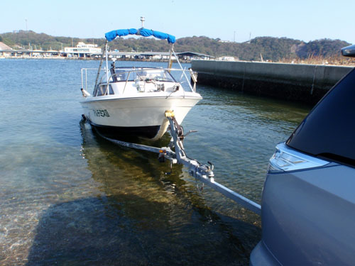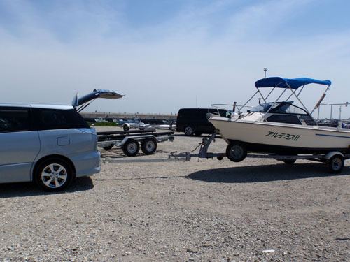 去年エスティマハイブリッドAHR20Wにヒッチメンバーの取付を行いましたD様からボートフィッシングに出かけられた際の画像が届きました。なかなか綺麗な状態を保っているヤマハFR17です。トレーラブルボートとして、軽量で、小さいながらもバウキャビンがあり家族を持つD様にとっては良いボートですよね。 ヒッチメンバーご依頼の際にお作りした揚降専用延長トングもバッチリ使えていますね。