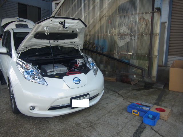 日産リーフに特注ヒッチメンバー取り付けしています。