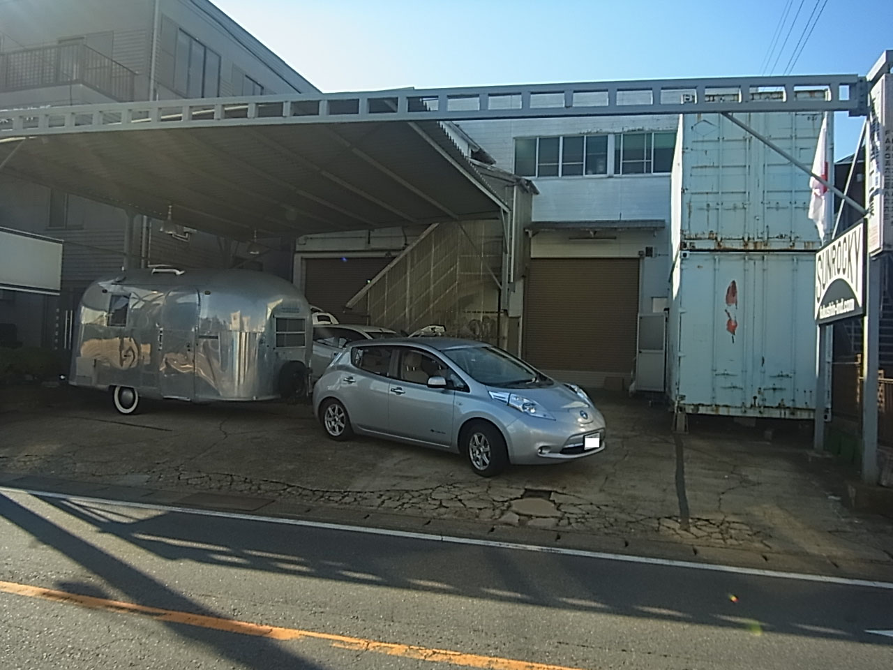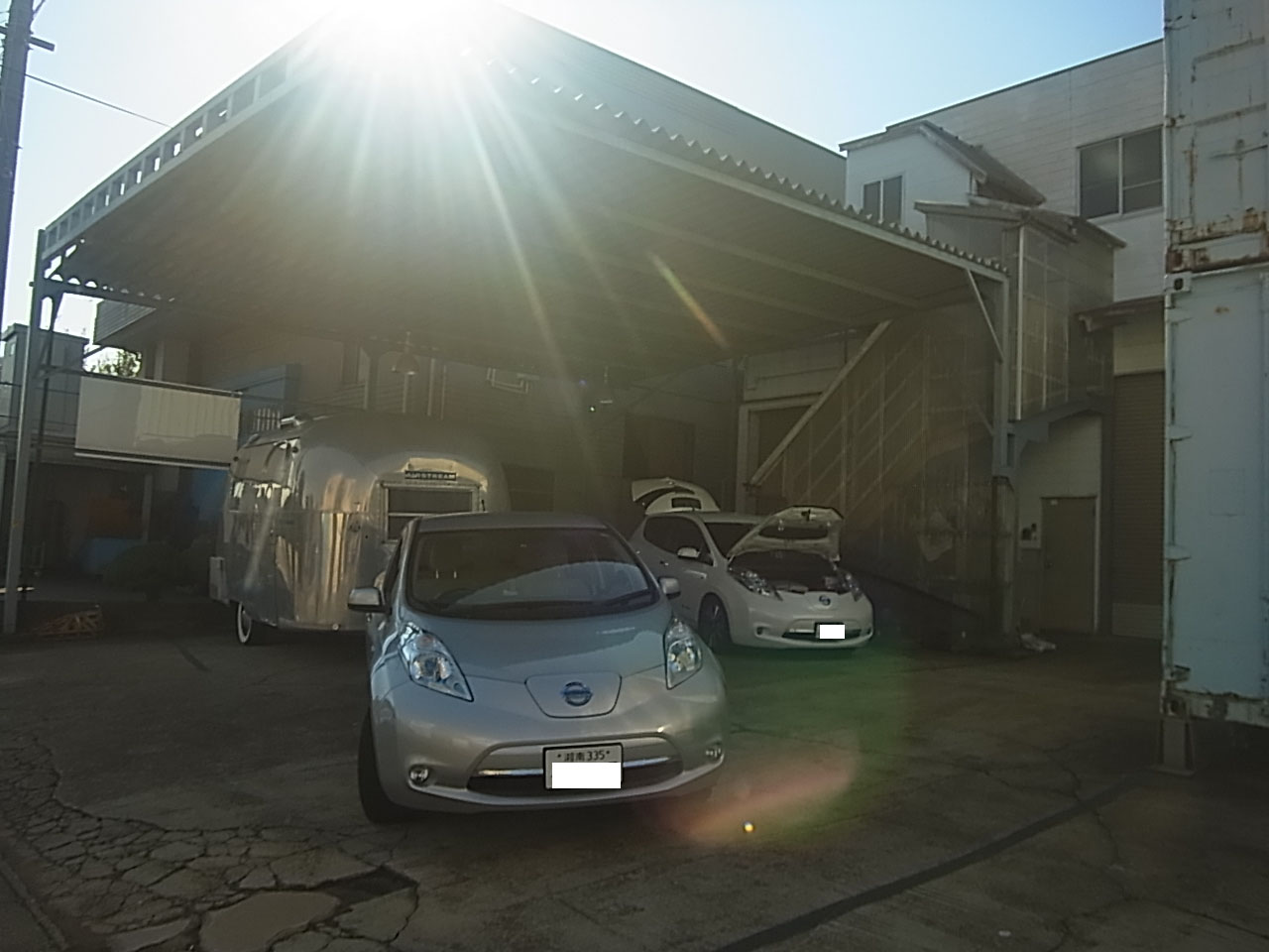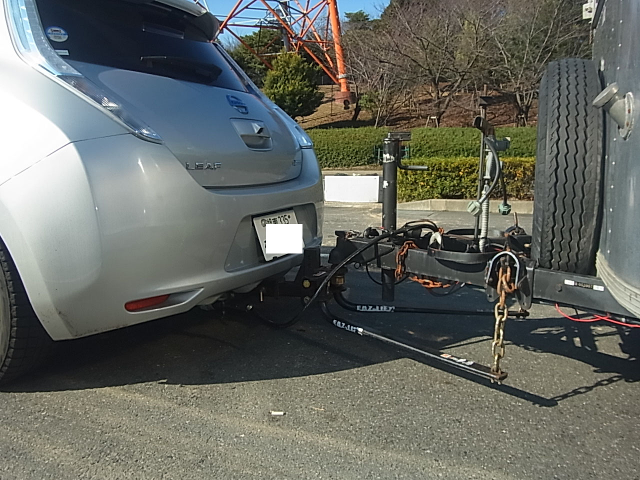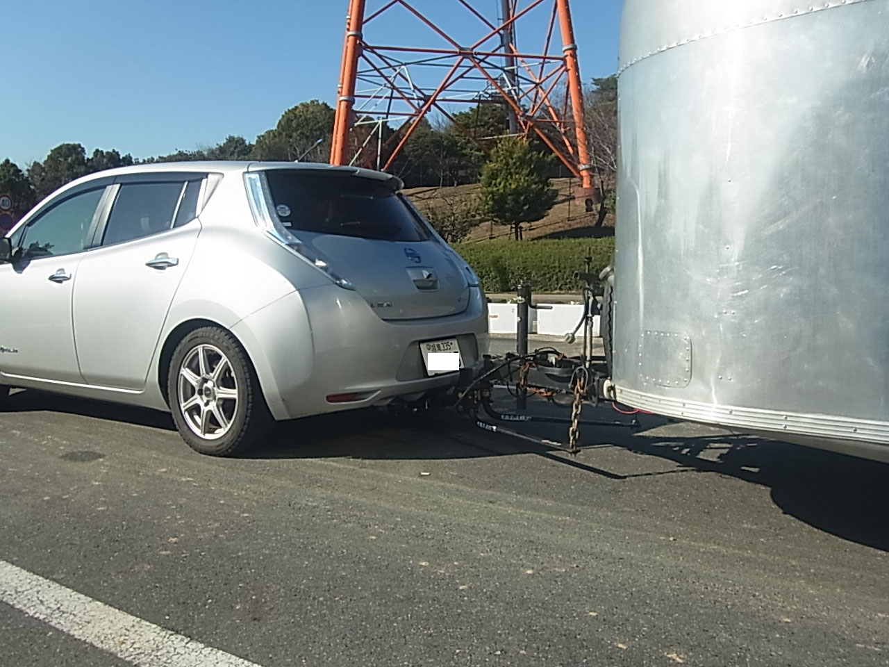 昨日の工場は日産リーフの特注ヒッチメンバー取り付けしていましたが、一年程前にリーフに取り付けしたお客様が先日名古屋でのイベントに来たついでに弊社に立ち寄ってくれました。 リーフでエアストリームというトラベルトレーラーを牽引して。 偶然リーフが2台も弊社工場に並びました。 牽引走行はかなり快適と聞いていたけど、自分で運転してみなきゃ実感無いので運転させて貰い近くの公園まで 確かに快適な走行。 加速も申し分ない。 ホントにビックリするくらいな走行で、しかも箱根から弊社まで高速道路のSAで無料充電してくるので、電気代タダの高速通行料だけ。 エアストリームでのカフェリュウセンケイの情報。 http://www.cafe-ryusenkei.com/ https://gazoo.com/column/daily/16/07/02/ |