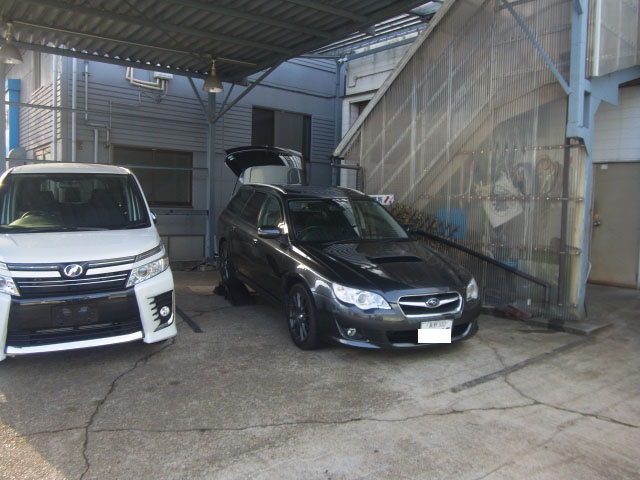 レガシィBP型が入庫し、重牽引の特注ヒッチメンバー取付しています。