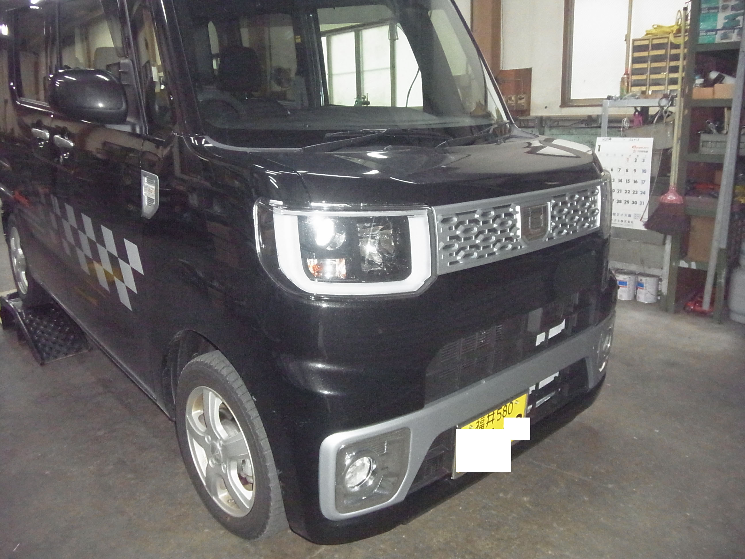 ダイハツウェイクが入庫し、特注ヒッチメンバーの作業をしています。
