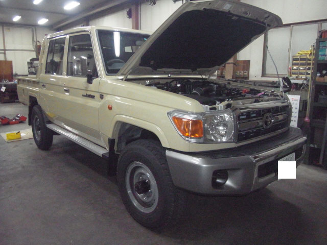 最近復活登場したランドクルーザー70のピックアップトラックに特注ヒッチメンバー取付しました。