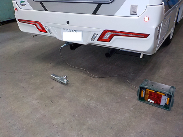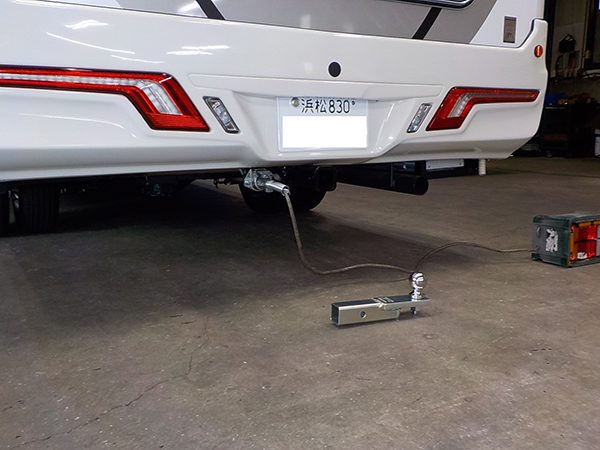 カムロードキャンピングカーに特注ヒッチメンバー製作取付しています。