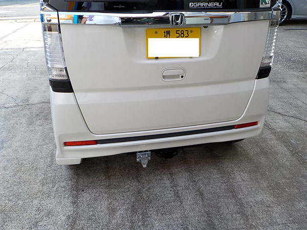 朝一番入庫のホンダ NBOXカスタム にヒッチメンバー取り付けしました。