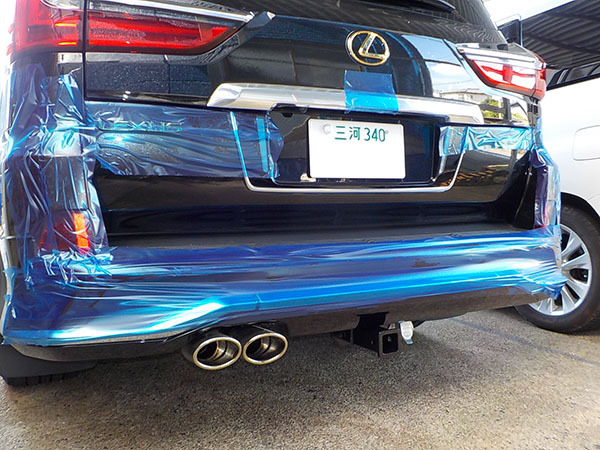 レクサスLX570エアロに特注ヒッチメンバー製作取り付けしています。