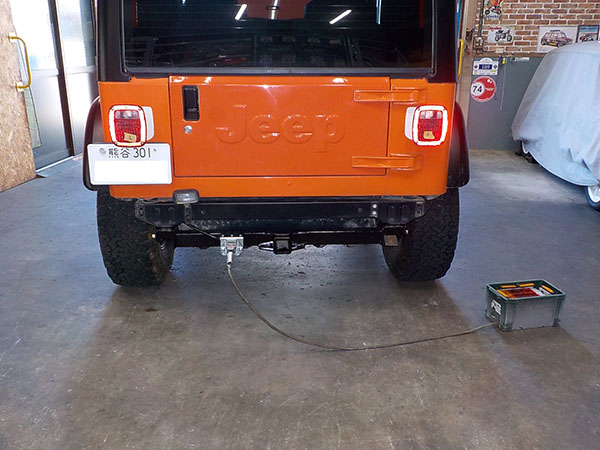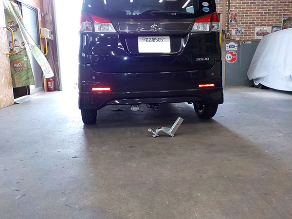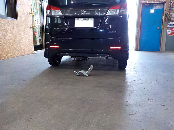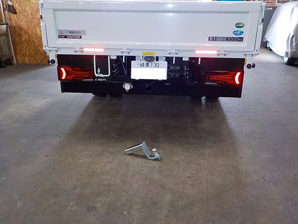 いすずエルフ平ボディ3tトラックに特注ヒッチメンバー取り付けしました。