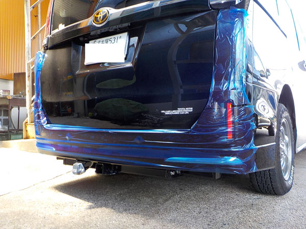 ノア ZRR80G エアロ に特注ヒッチメンバー製作取付しています。
