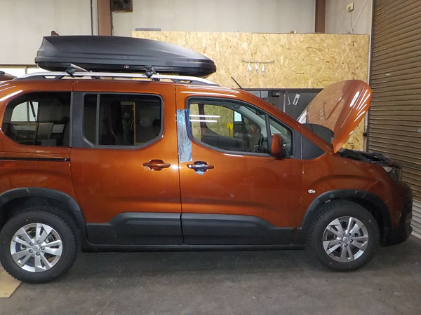 プジョーリフター が入庫し特注ヒッチメンバー製作取付しました。
