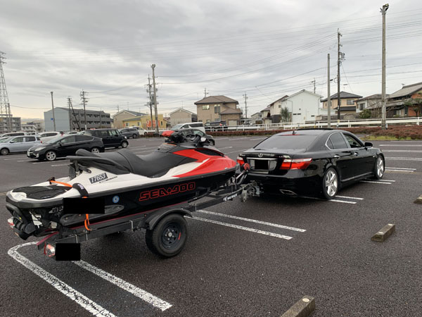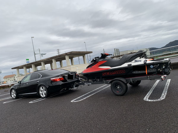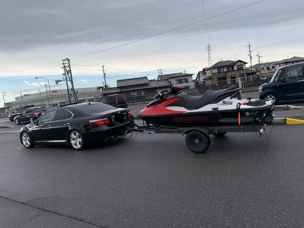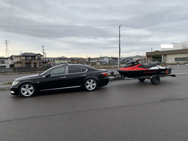 先日取付を行いました レクサスLSのお客様からジェットのトレーラーを牽引している画像を頂きました。