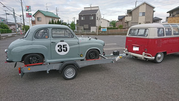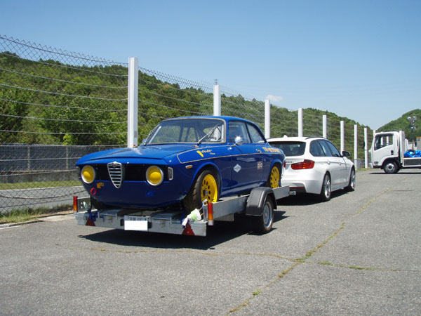 アルファロメオ ジュリア スプリント GT をW76車載トレーラーに積んでおられます。 カッコイイですね。 いわゆる段付きってモデルです。 全てを自分で操作しないと動かせない旧車、ポンプの音を聞いてチョーク引いてエンジン始動し、シフトは労らないと操作出来ない、グリップしないバイアスタイヤ、当然コーナリング中に各輪に知らないうちにブレーキかけてるなど電子制御の介入も無い。 機械好き者としては憧れますけど、なかなか飛び込めない世界です。 車両も高騰してますし。 旧車トレーラーの皆様 http://fukushin-ind.com/ |