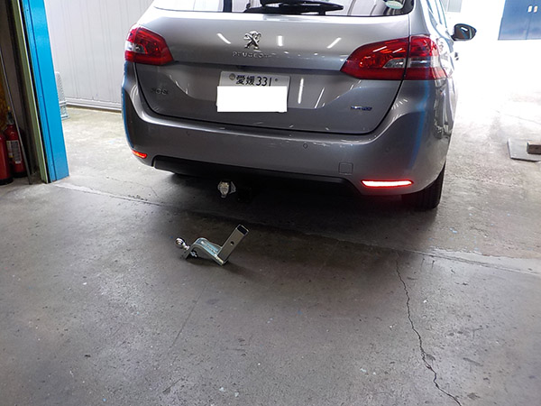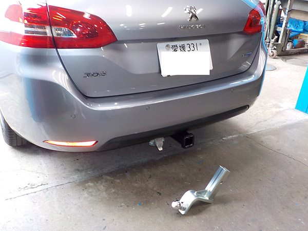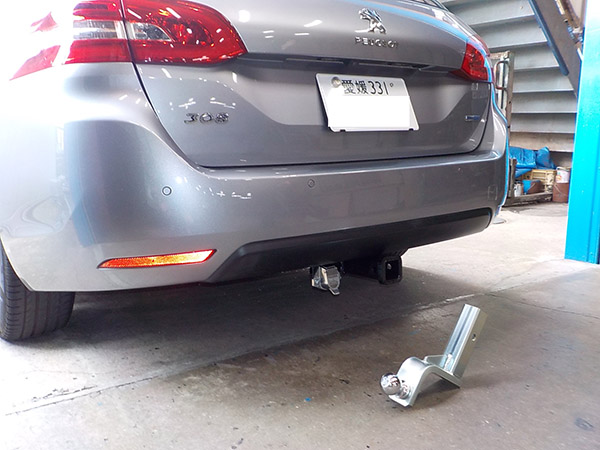 プジョー308SWに特注ヒッチメンバー製作取付しています。