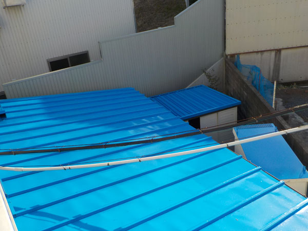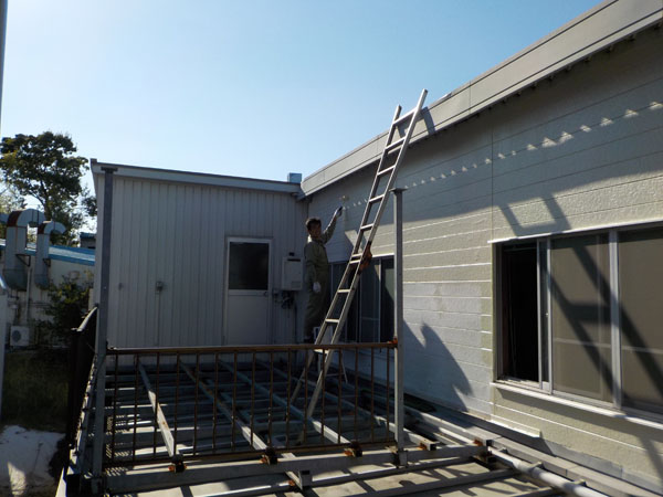今日だけじゃないけど、先月くらいから、穏やかな天気のよい日に工場の外壁塗装や、コーキング、波板屋根の交換なんかをしてます。