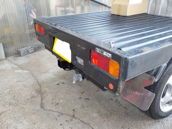 マツダベリーサが入庫し、特注ヒッチメンバー製作取付しています。