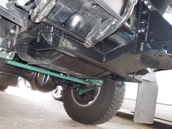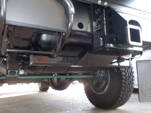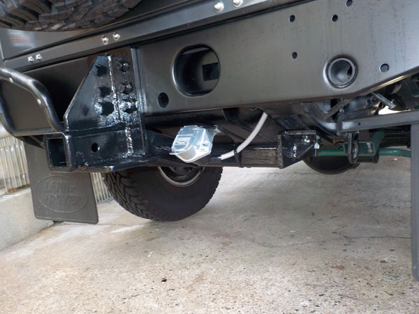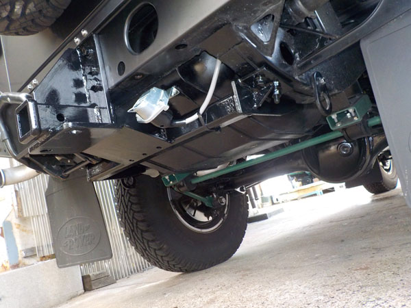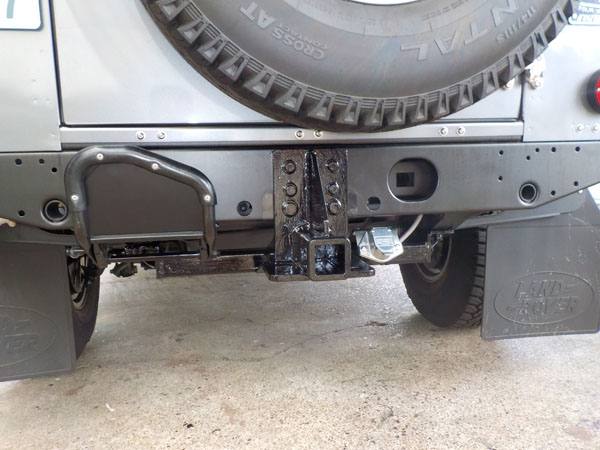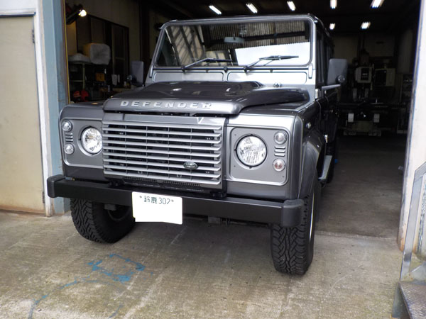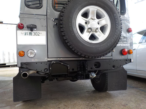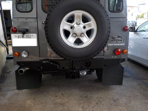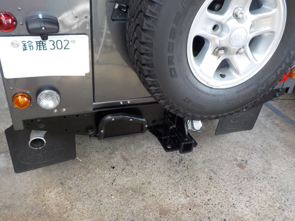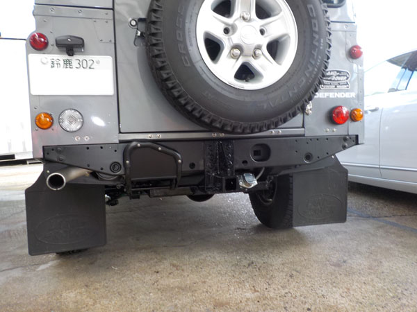 ランドローバー ディフェンダー110 が入庫し、特注ヒッチメンバー製作取付しています。