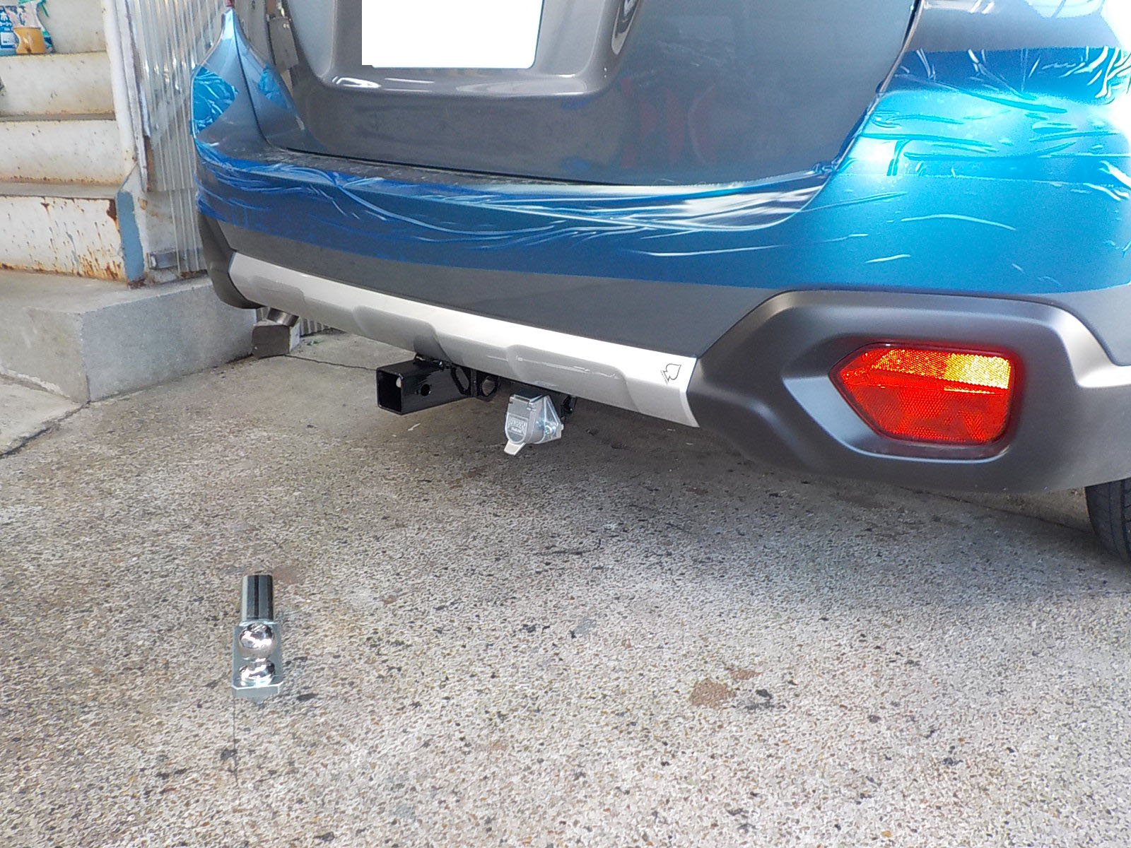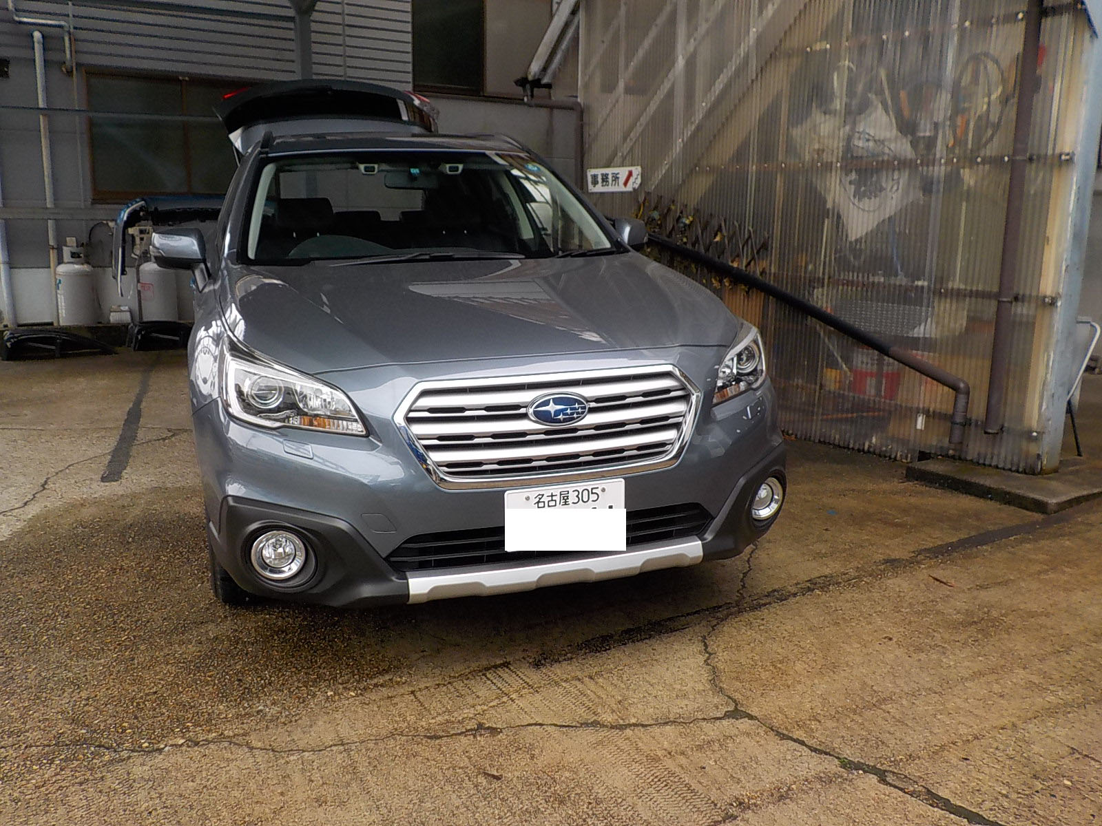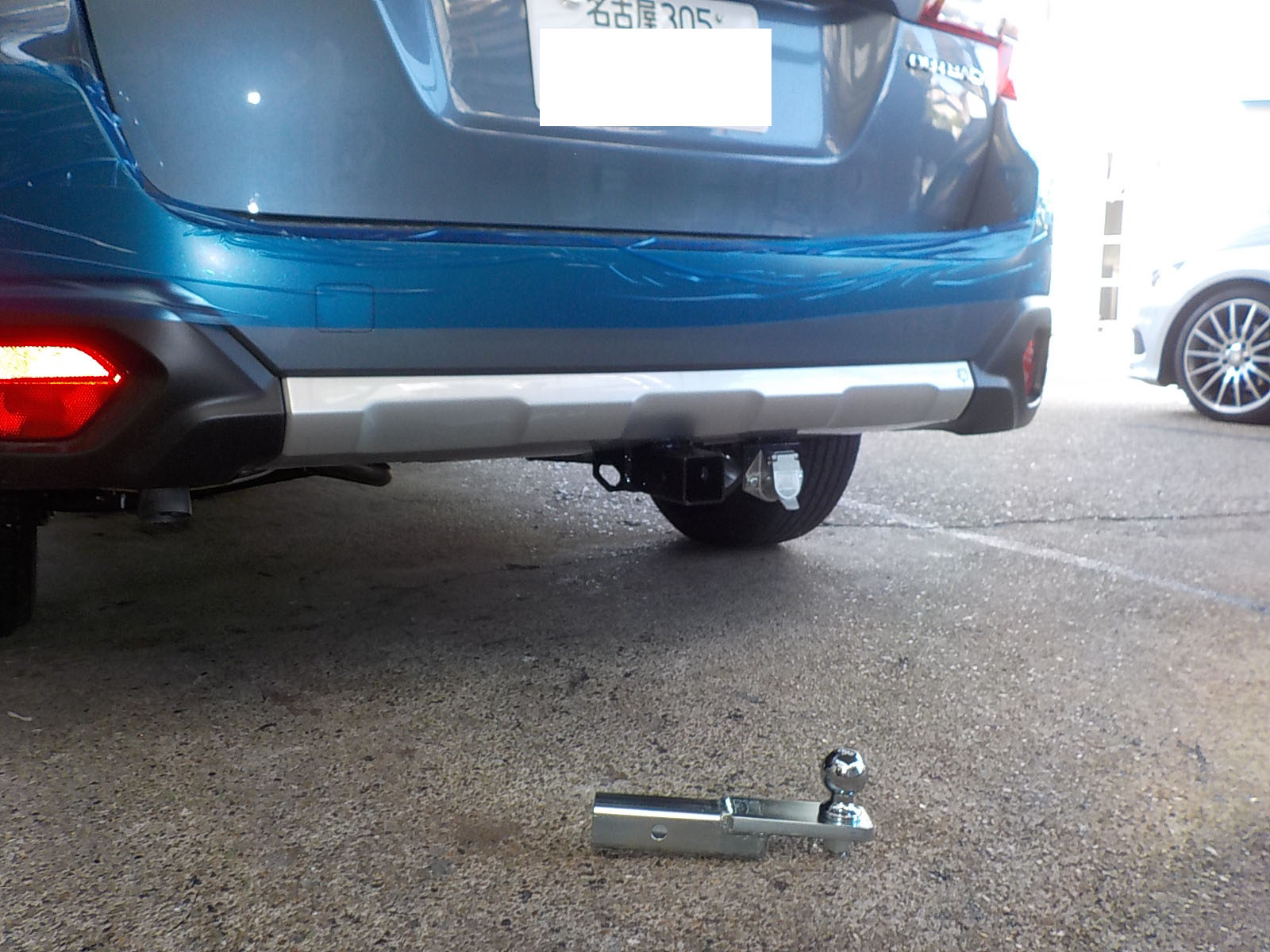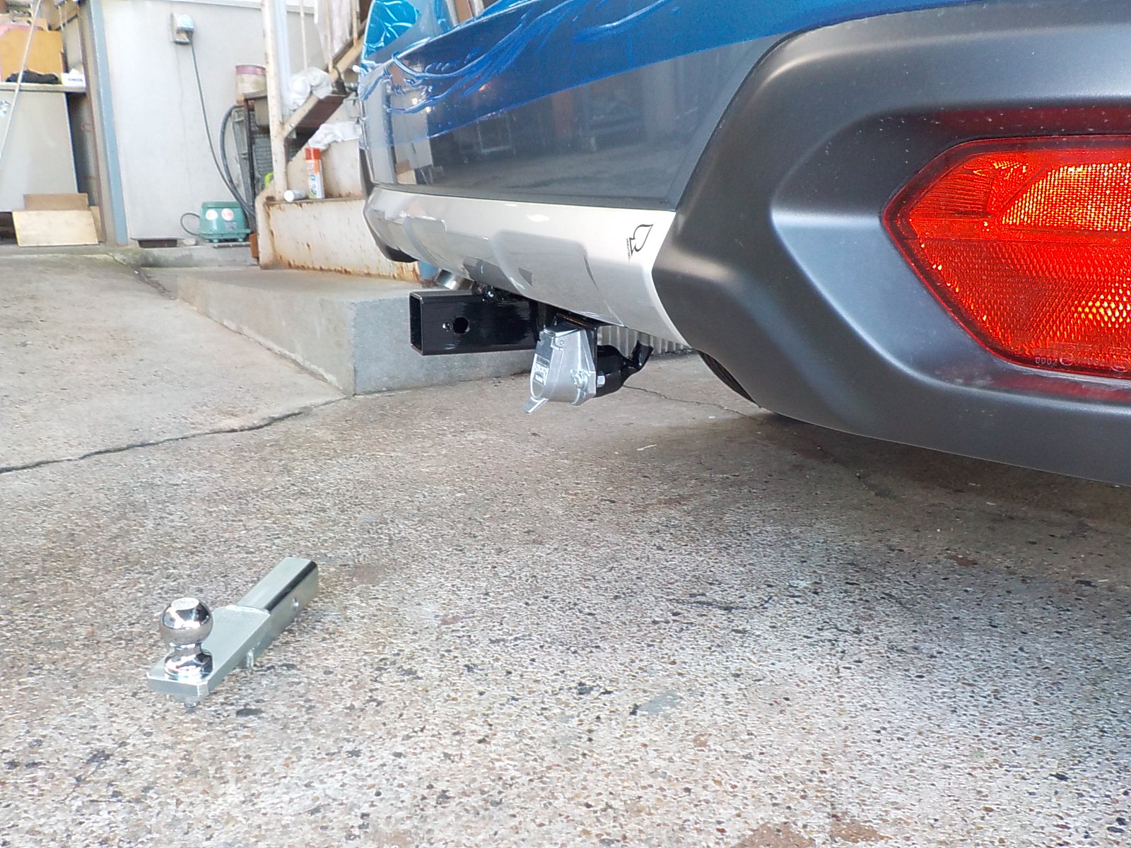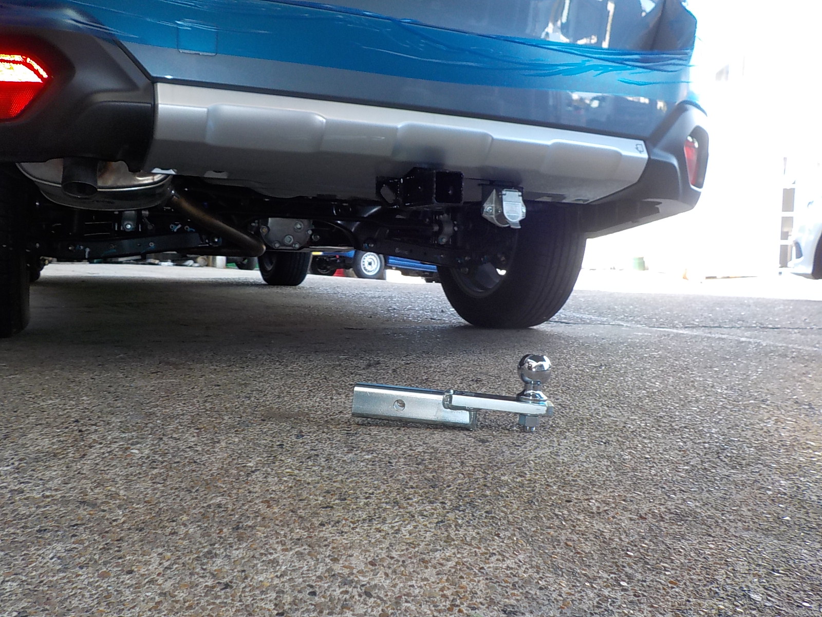 新型スバルアウトバックDB9が入庫し、特注ヒッチメンバー製作しています。