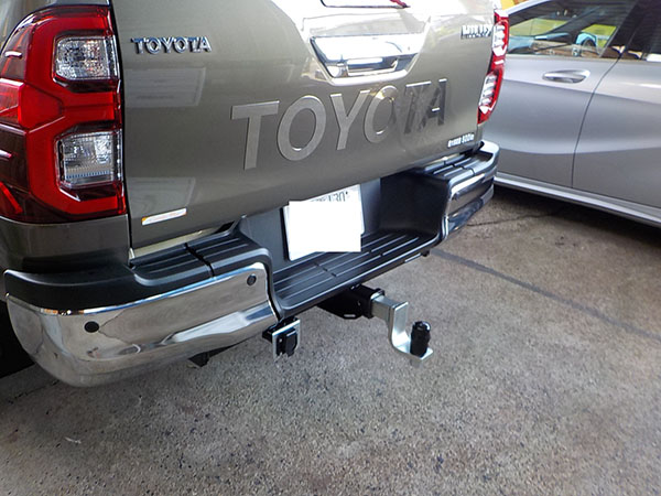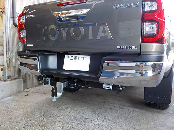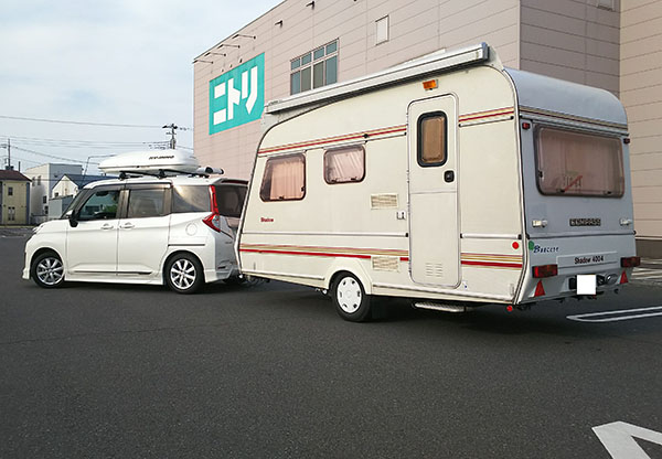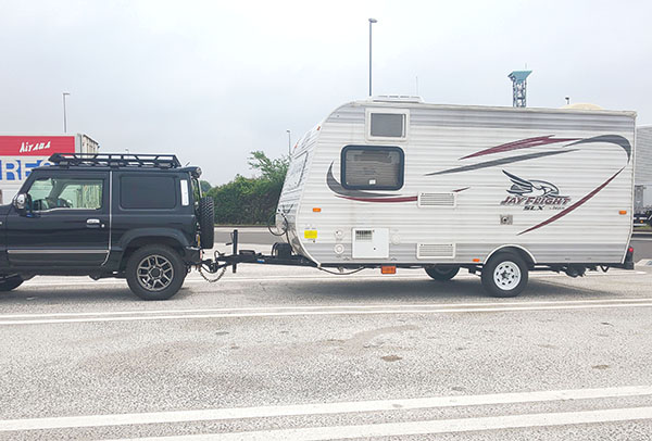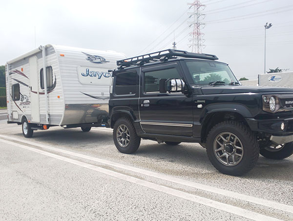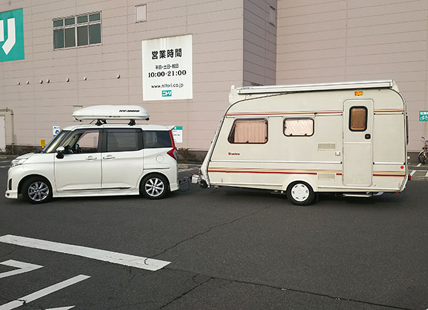 数年前に特注取付を行ったトヨタルーミーでキャンピングトレーラー牽引の画像を頂きました。